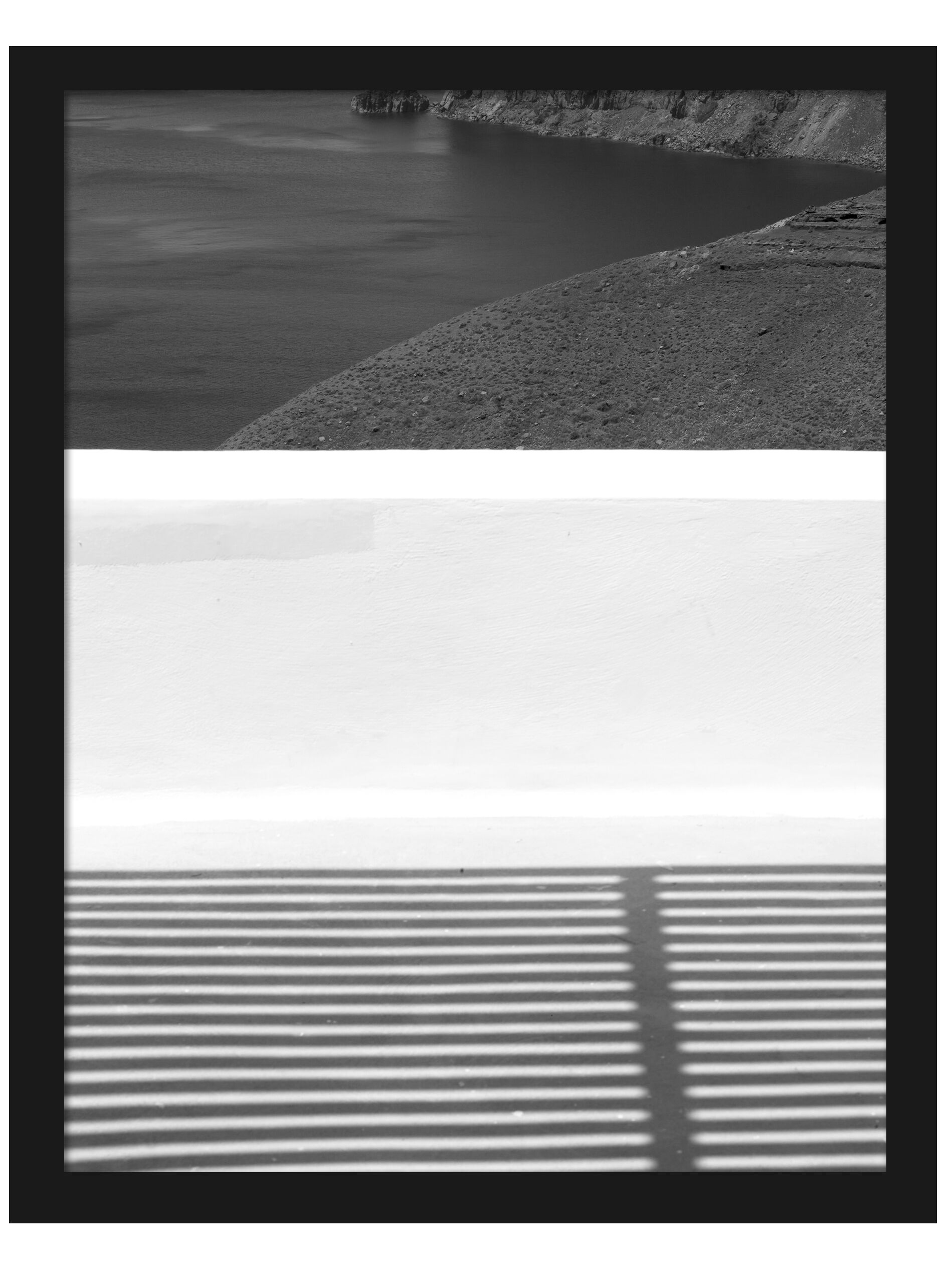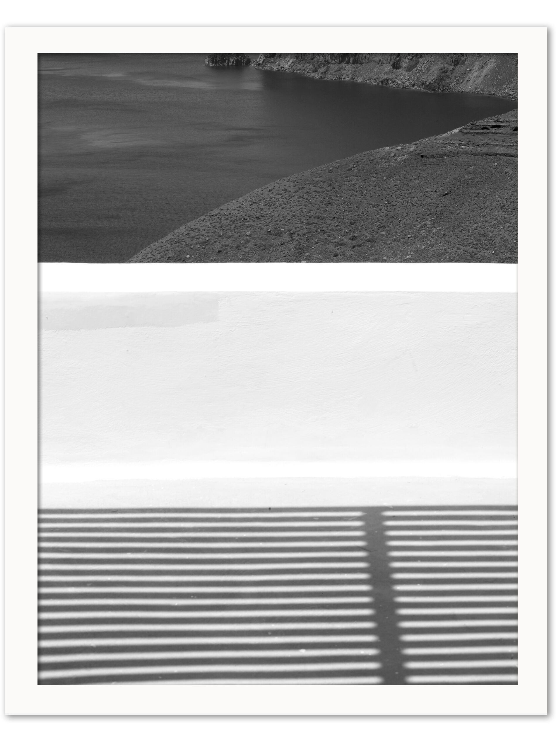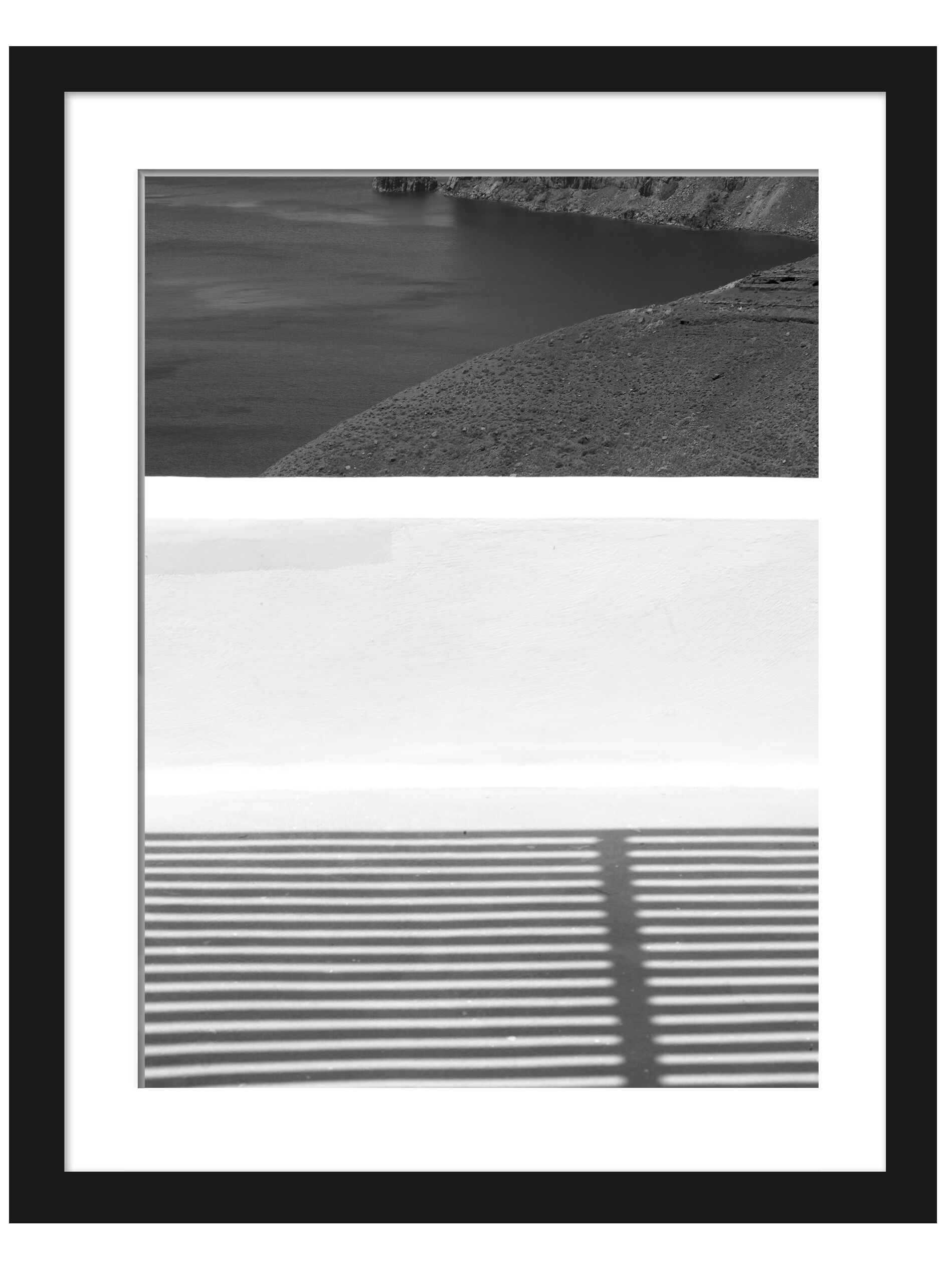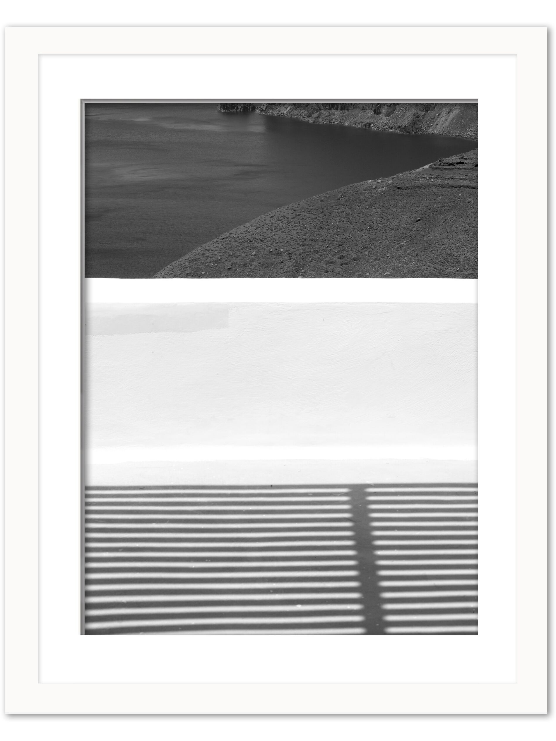 This print features striking geometric shadows on a balcony in Santorini, perfect for adding a modern twist to any space.